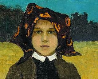 Jānis Valters, „Zemnieku meitene” (Młoda wieśniaczka, ok. 1904, olej na płótnie, 103 x 125 cm, Łotewskie Narodowe Muzeum Sztuki w Rydze).