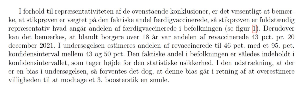 OBS: Det kan være svært at måle vaccinevillighed vha. surveys (nature.com/articles/s4158…). Her er vores overvejelser om undersøgelsens repræsentativitet .👇 Overordnet ser undersøgelsen ud til at være præcis, men vi forventer en lille overvurdering af den faktiske villighed. (5/5)