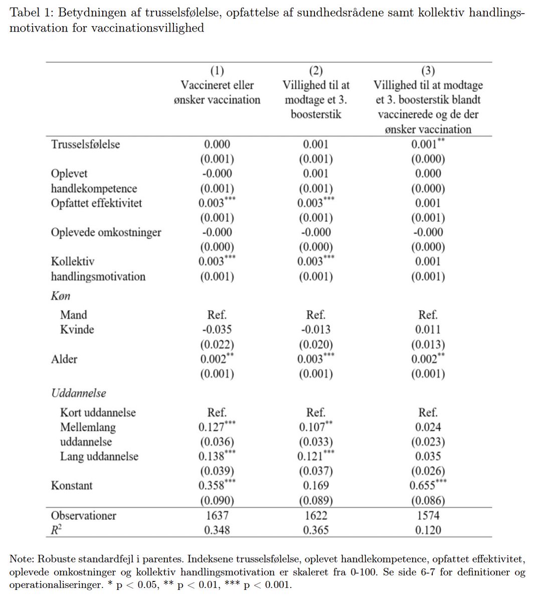 Psykologi betyder tilgengæld noget. Analyser viser, at dem, der i mindre grad oplever COVID-19 som en trussel, er mindre tilbøjelige til at sige "ja" til 3. stik, selvom de har fået de første 2. (4/5)