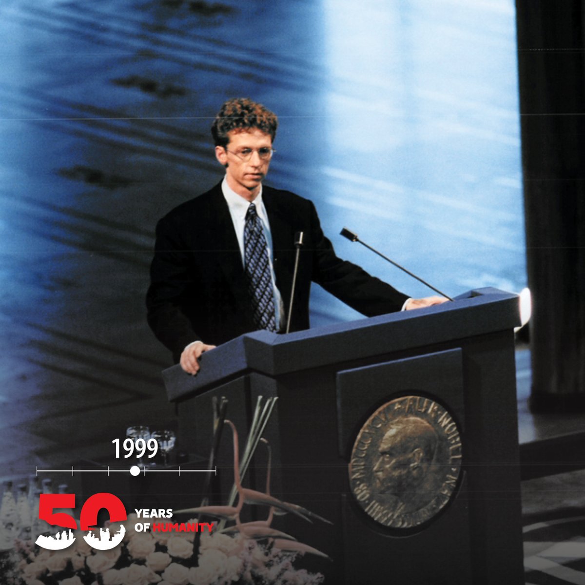 📸1999: MSF is awarded the Nobel Prize for Peace for "pioneering humanitarian work on several continents." James Orbinski , MSF International President from 1998 to 2001, gives the acceptance speech in Norway.
