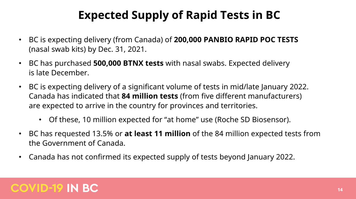 #NEW: BC won't be changing most of their Rapid Test distribution plan until they get more tests. Majority won't arrive until mid January 2022.