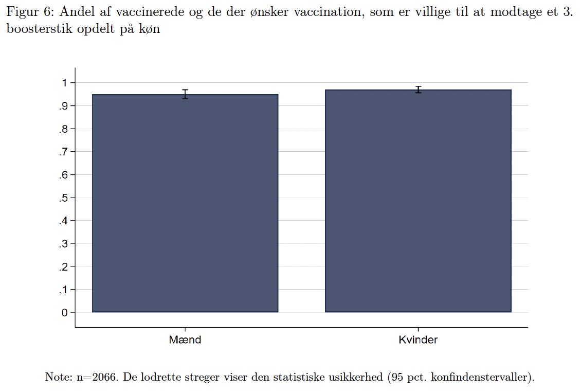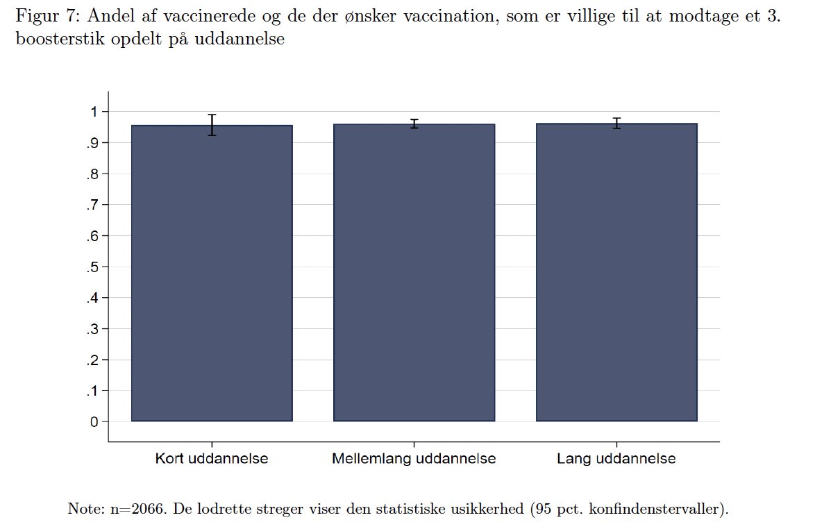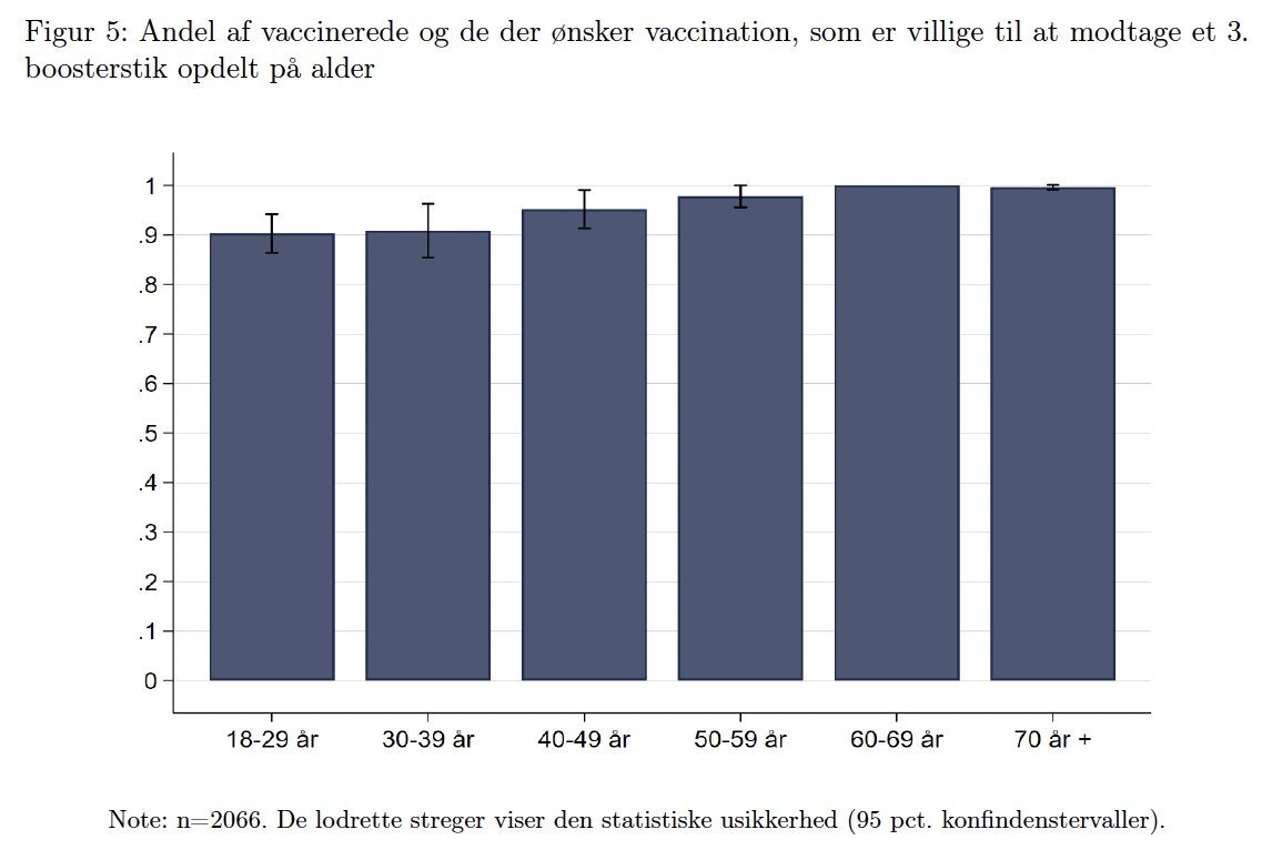 Ovenstående grad viser den totale villighed i befolkningen. Grafen nedenfor viser andelen blandt dem, der har fået eller ønsker vaccination med 2 stik. (2/5)