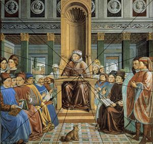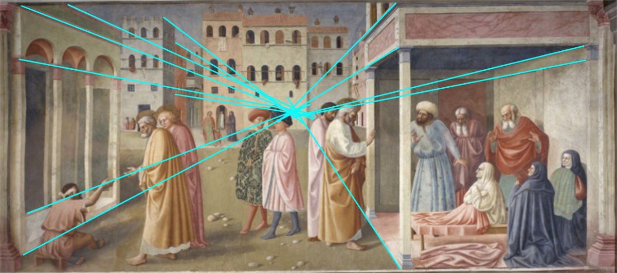 + se distorciam com a distância (pelo contrário, temos vários exemplos anteriores de tentativas claras de perspectiva), mas ANTES de Brunelleschi nunca havia existido a ~necessidade~ de comprovar matematicamente o fenômeno, nem entender suas "regras" para funcionar perfeitamente.
