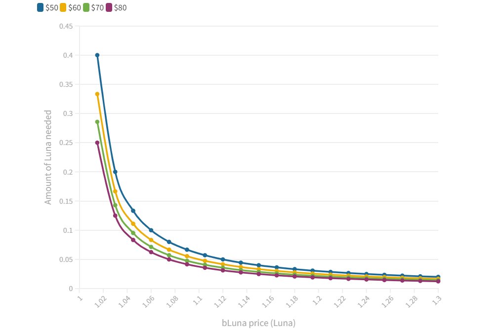 As an example: in case Luna traded at $50 and bLuna traded at 1.01 the amount of Luna necessary would be 0.4, which is a quite reasonable amount.