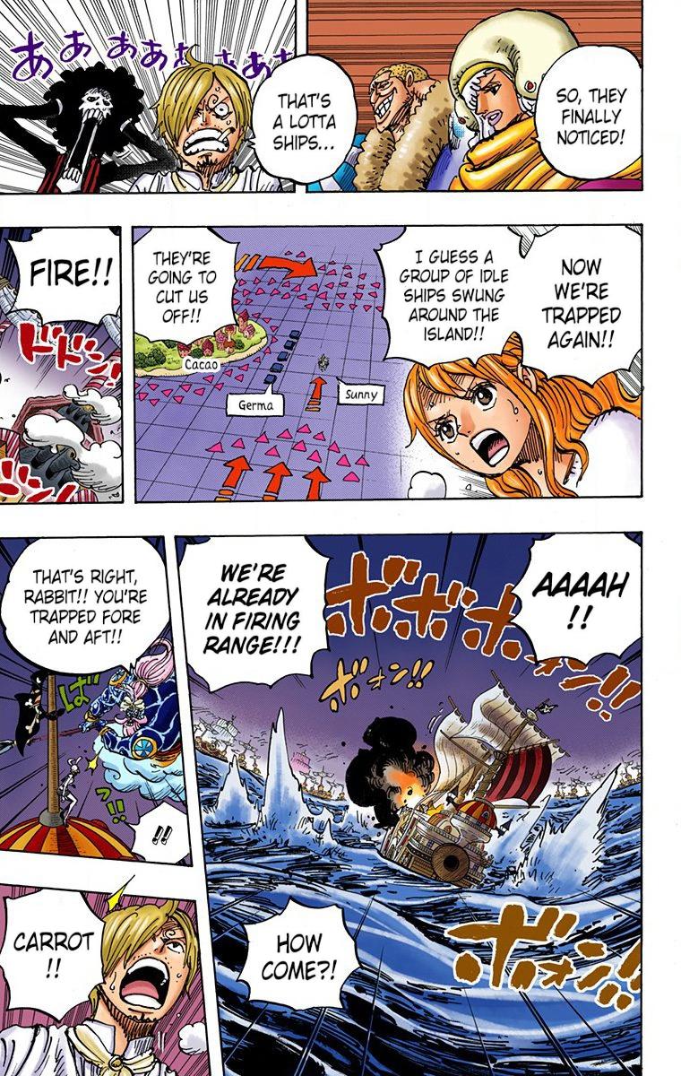 Here’s Daifuku coming in for Carrot. There’s Sanji noticing the attack from below. Guess what happens ? :