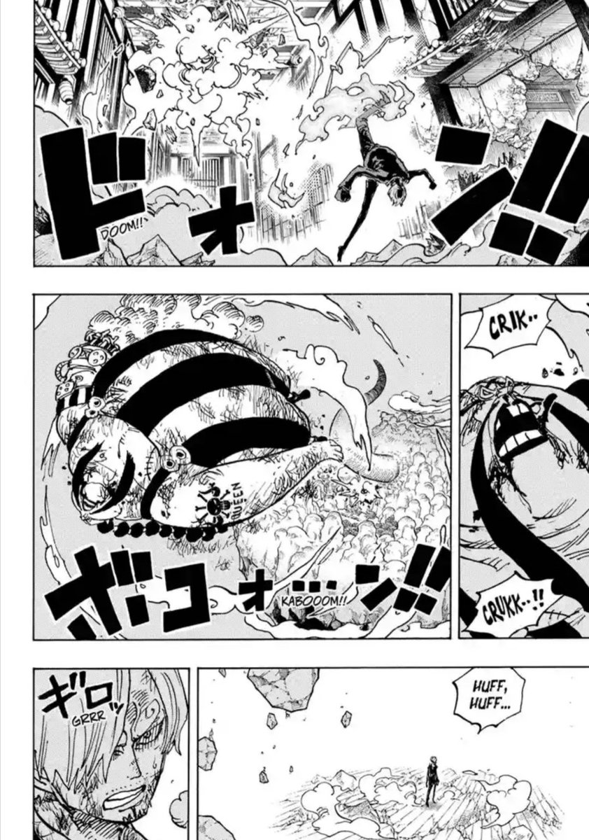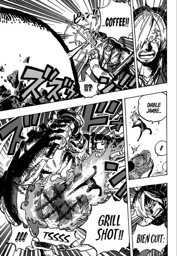 Sanji speedblitzing a rokushiki user. Then again oda doesnt emphasis on sanji's strength or raw power but on sanji's speed