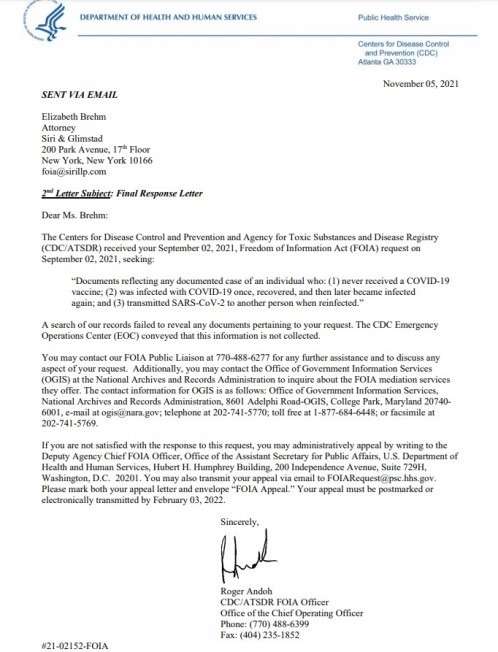 Scientific Studies (listed in dossier) & further FOIA data shows the CDC is unable to provide any data or grounds that natural immunity is not valid.