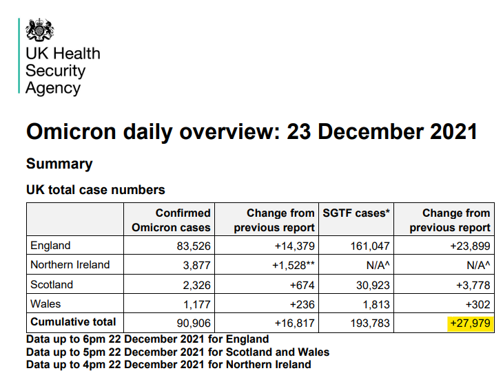 The UKHSA's Omicron daily overviews are clearly confusing a lot of people. Even my mum said she'd heard people saying there were only 10-15k Omicron cases a day in the UK This isn't correct, though.