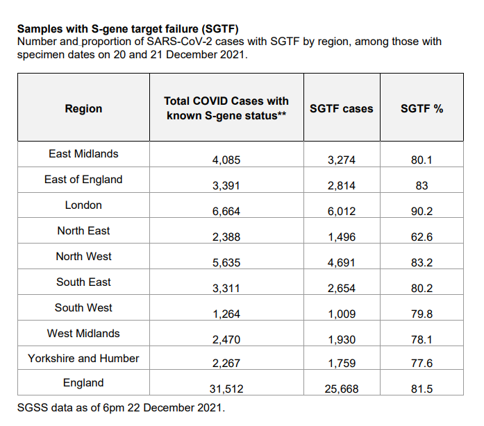 From this data, the report estimates that Omicron is the dominant variant in every region of England. If you hear "There are only 16k Omicron cases a day", it's not true.
