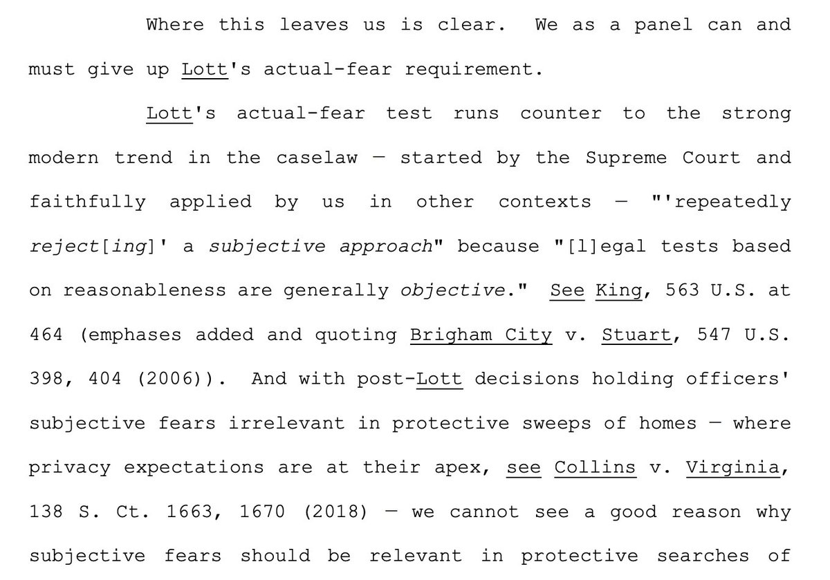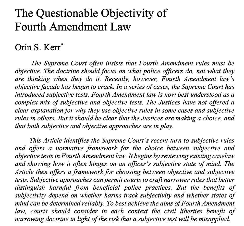 On the merits, I disagree with the panel's view that modern 4A rules are generally objective w/r/t police conduct. As I explained in this recent article, there are a lot of subjective rules, many of them very recent. texaslawreview.org/wp-content/upl…