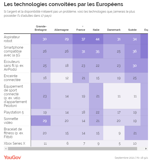 Une surprise qd même ds ce classement, l'aspirateur robot 🤖 séduit pratiquement dans tous les pays européens !