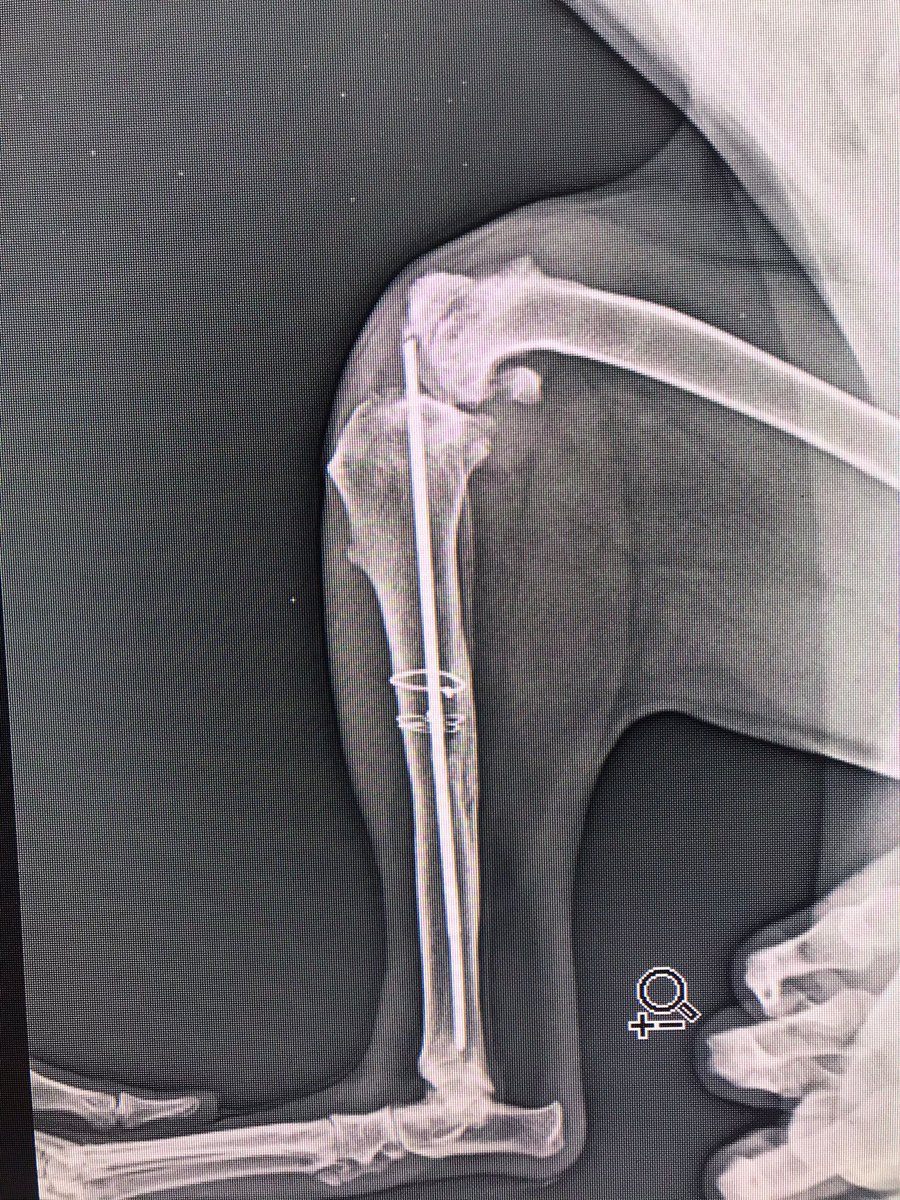 Yanlış yapılan operasyonun röntgeni şu şekilde. Ordaki pin dize baskı yapa yapa orayı eritmiş, kullanılamaz hale getirmiş artık. Bu yüzden o kısım alındı ve yerine protez takıldı. Operasyon ve protez masrafı için 100 lira destek olabilecek 55 gönüllü arıyorum.