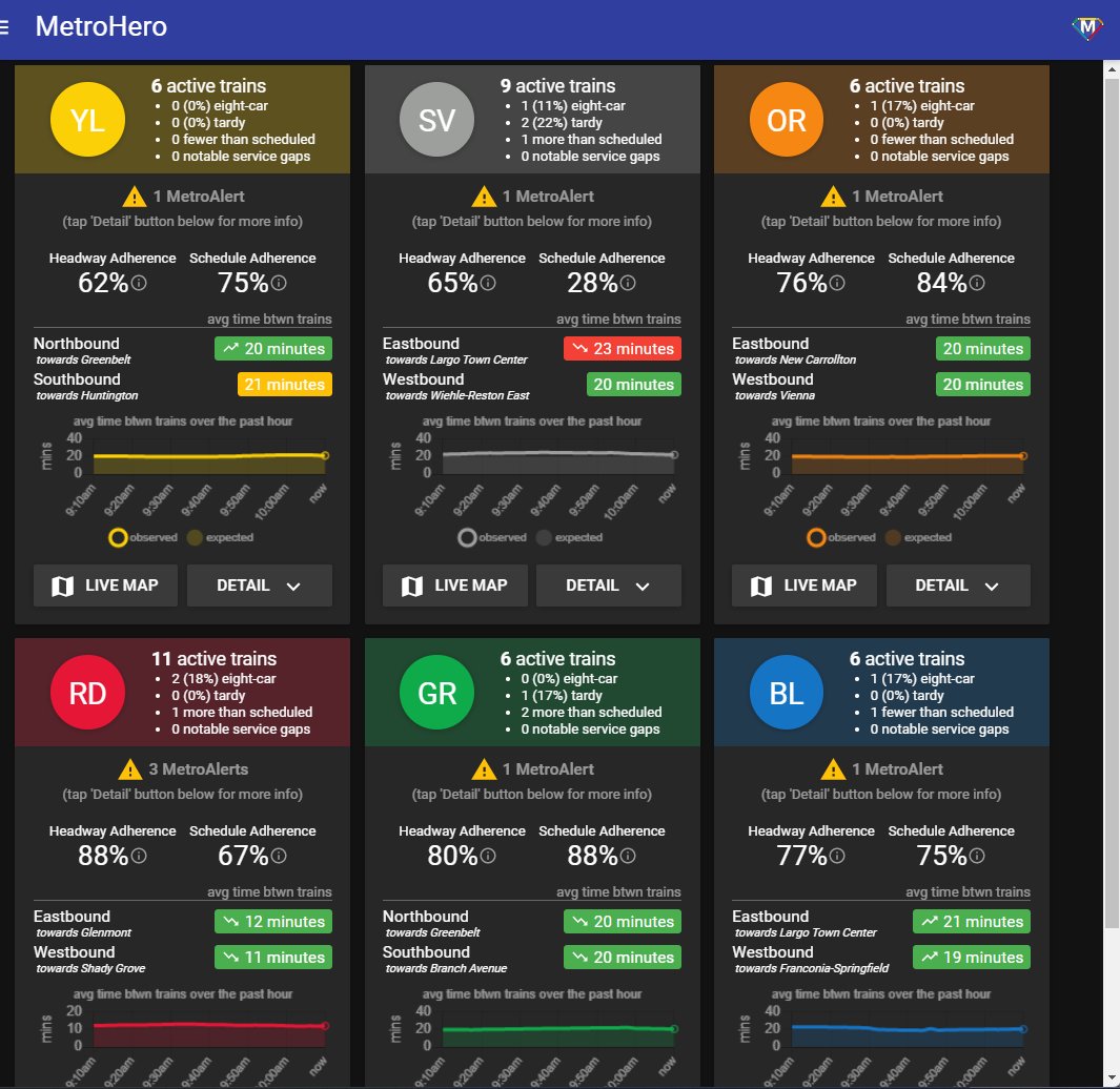 #wmata Red Line trains continue running every 12, Yellow/Green every 20, Orange/Silver/Blue every 30.