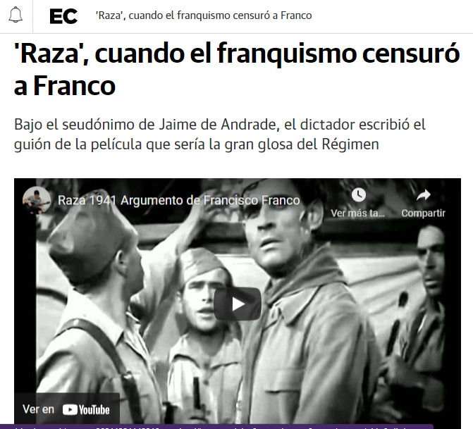 Franco censuró la película Raza (1941) de la que "fue" guionista. Terminó la Segunda Guerra Mundial y le amputó 6 minutos en los que los franquistas levantaban el brazo y utilizaban formas del fascismo, Quiso ocultar sus vínculos con Hitler y Mussolini y clamar su anticomunismo.