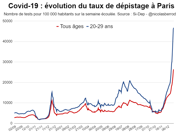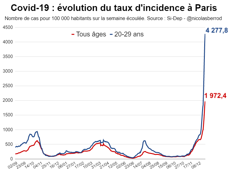Tous âges confondus, le taux d'incidence à Paris s'élève à quasiment 2 000. #Covid19