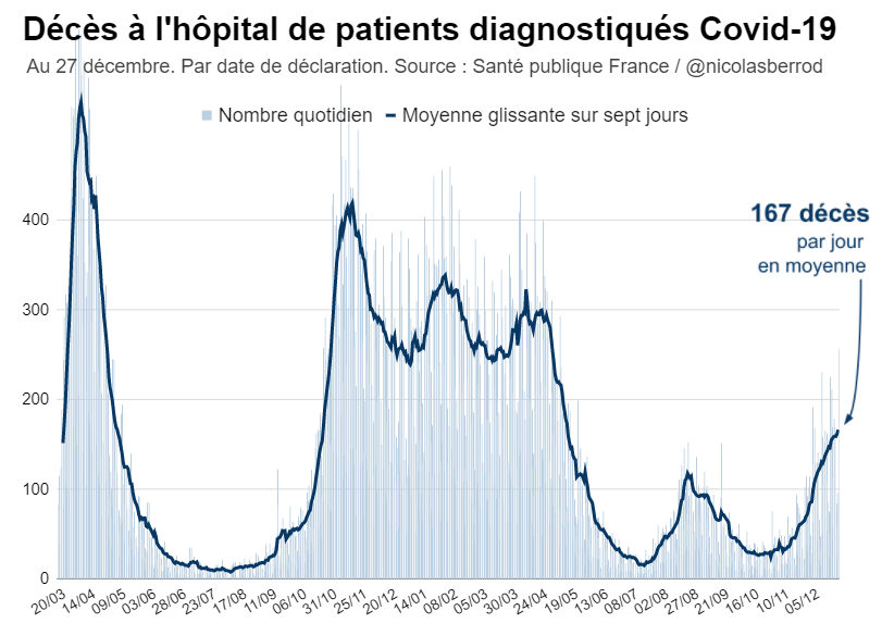 Le taux d'incidence en France atteint près de 760 à la veille de Noël (semaine du 18 au 24 décembre), son plus haut niveau depuis le début de la pandémie. #Covid19