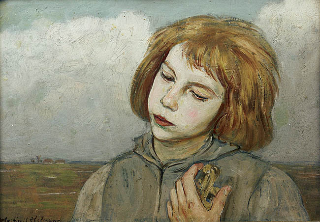 Jānis Valters, „Zemnieku meitene” (Młoda wieśniaczka, ok. 1904, olej na płótnie, 103 x 125 cm, Łotewskie Narodowe Muzeum Sztuki w Rydze).