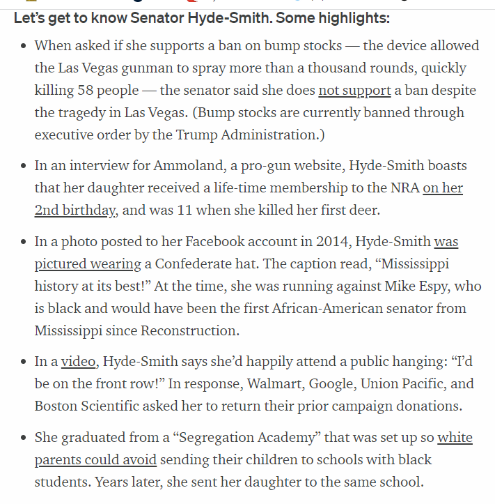 No rehash or anything. I just like to give credit where credit is due. Hyde-Smith is a *^@&