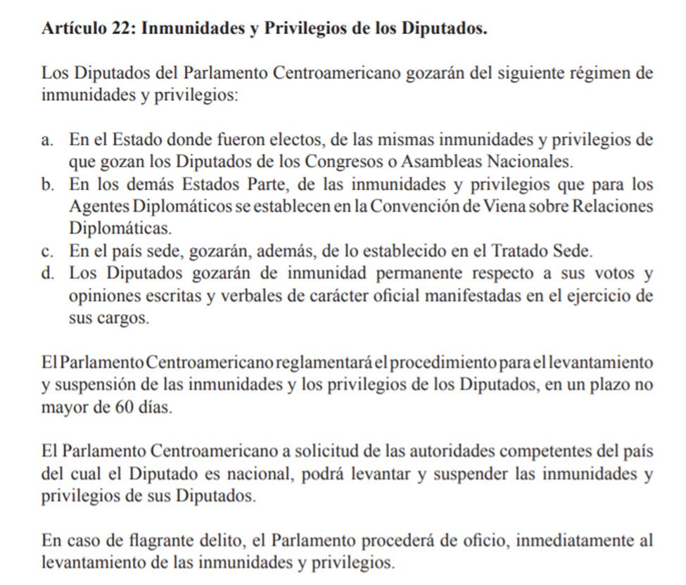 8/ Los diputados del PARLACEN gozan de inmunidad? Así estipula el tratado constitutivo: