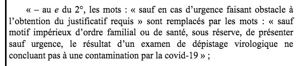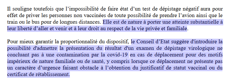 Il recommande donc qu'un test négatif reste valable en cas de motif impérieux.