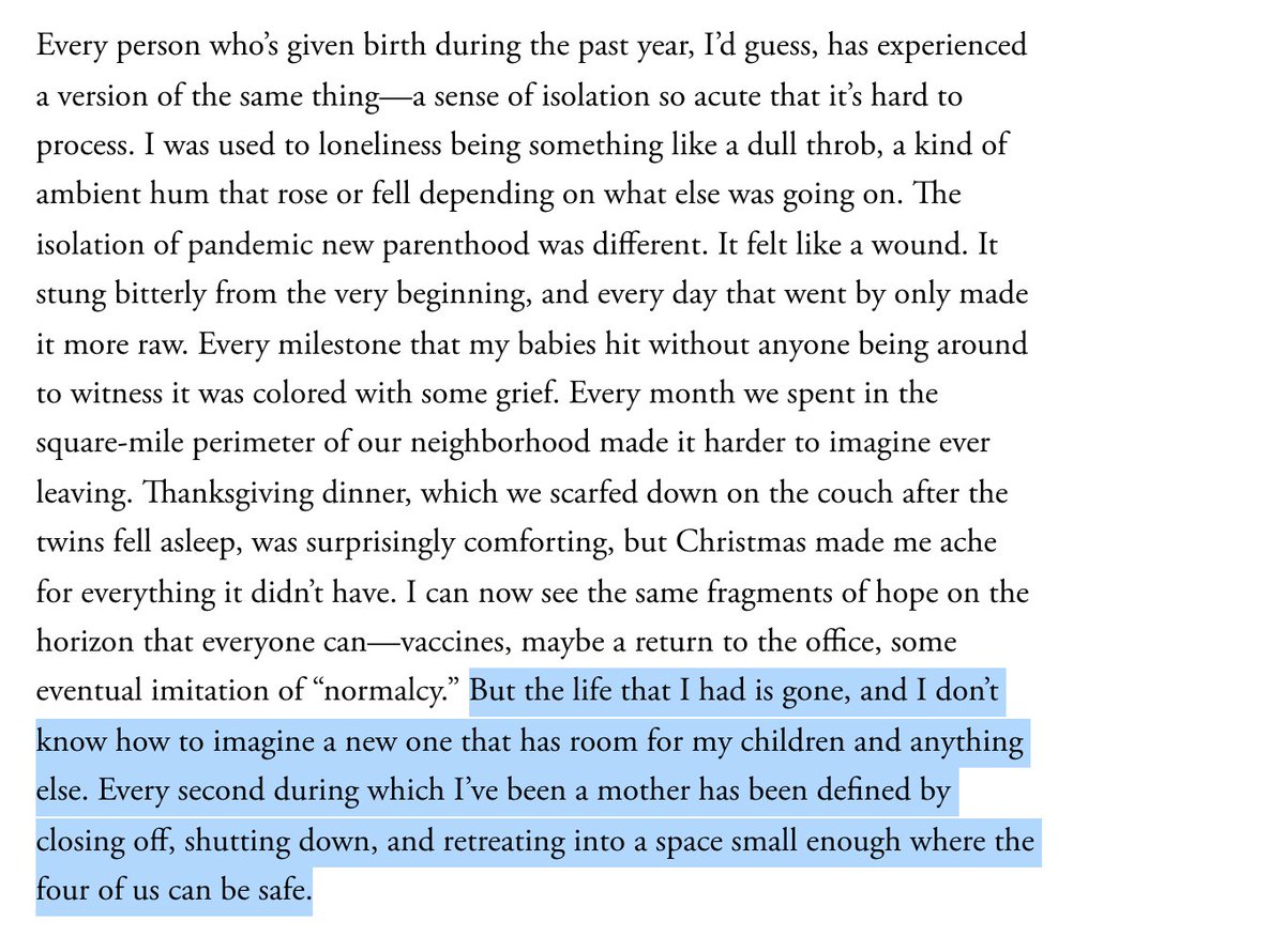 3/ I had been a pandemic mom for a year when @sophieGG’s piece on COVID parenting came out. I’ve read it a handful of times since then, and every time it gives me the permission and language I need to really sit with my own feelings. — @JaBogenon.theatln.tc/CaBJjxW