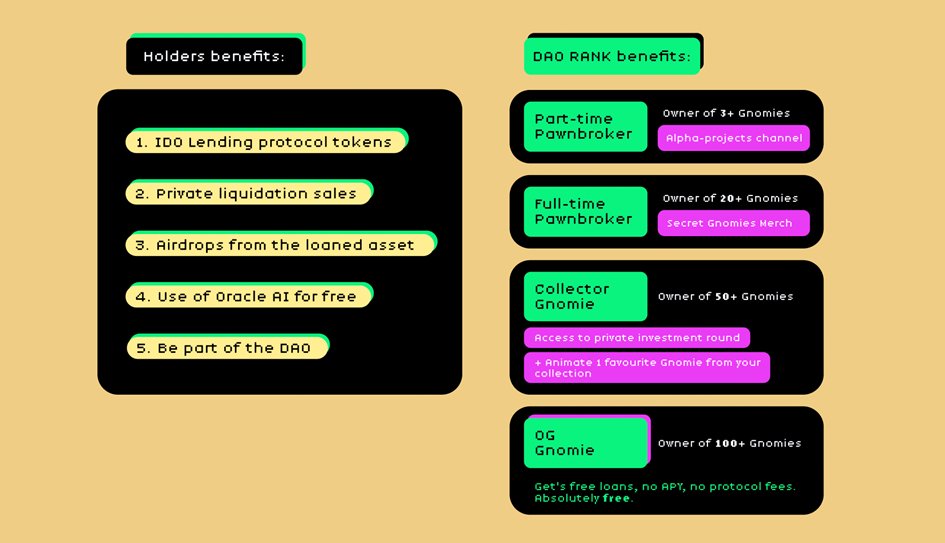 Avoir des Gnomies vous donne accès à une communauté basé DAO. Le but est de générer des profits pour ladite communauté.