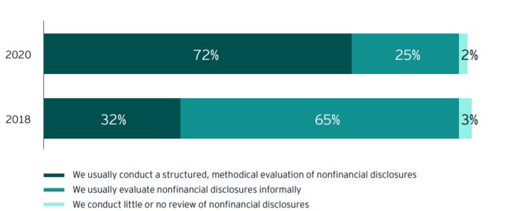 1. Today, 72% of investors surveyed claimed to conduct a structured, methodological assessment of non-financial disclosure – a major jump from the 32%