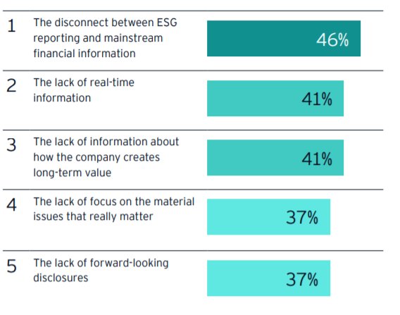 2. The five most significant challenges to the effectiveness and utility of ESG reporting.