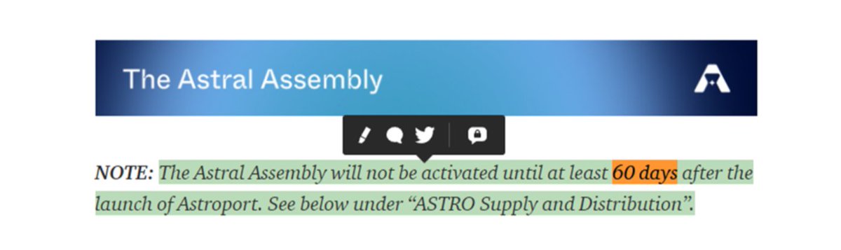 The Astroport Litepaper (astroport.medium.com/astroport-lite…) published on September 10th noted the grace period at the very start of the "The Astral Assembly" section and featured another reminder later in the "ASTRO Supply and Distribution" section.