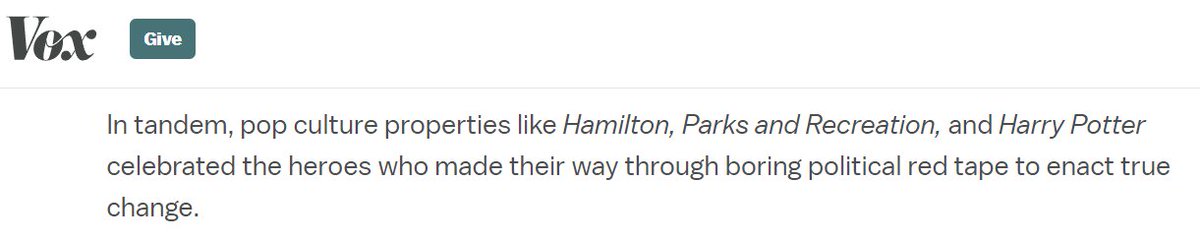 2/ Parks and Recs "is now widely considered" to be bad because a half dozen similarly neurotic tastemakers who don't know what fiction is or is for said so on their glorified blogs
