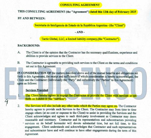📌📑 El acuerdo fue firmado en febrero de 2025 entre la SIDE y Tactic Global LLC.