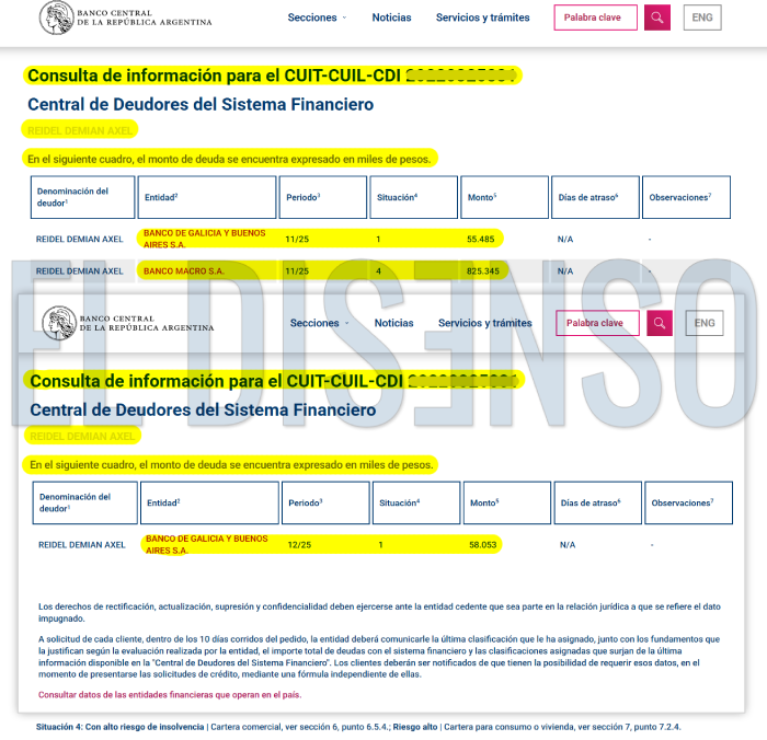 ▶️Por entonces, según informaba el BCRA, el físico acumulaba obligaciones por 880 millones de pesos en situación 4 o con alto riesgo de insolvencia.