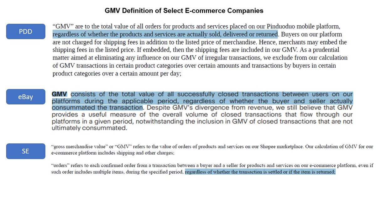 E-commerce’s business looks super simple (for 3P, just GMV * take rate), but a lot can be learned on the key assumptions: