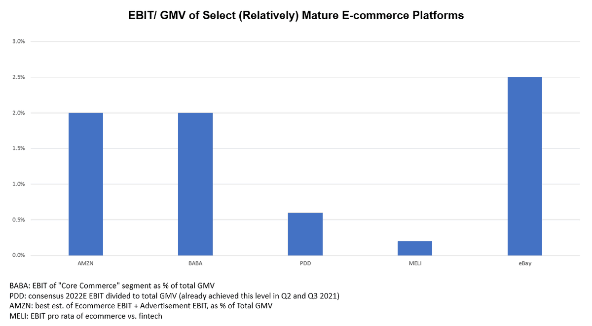 5% EBIT/ GMV has been the "magic number" most marketplace names (incl. 3P e-comm, food delivery and ride railing) have guided towards