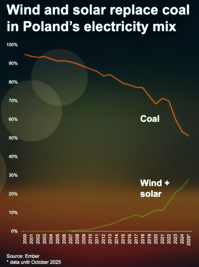 Polen will damit Kohle ersetzen, aber das passiert bereits seit zehn Jahren ziemlich gut - vor allem in den letzten drei Jahren. Der Anteil der Kohle ist bereits auf...