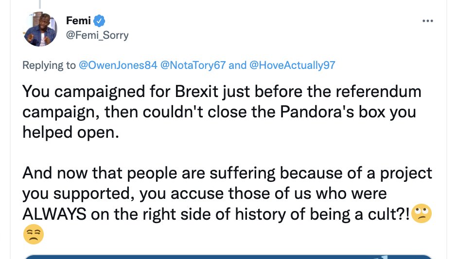 I am beyond bored of people who did literally nothing to campaign for Remain in the actual referendum campaign calling me a raging Brexiteer, or even blaming me for Brexit (!)