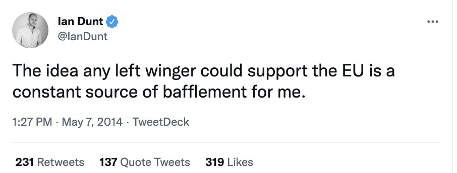 This was a mainstream discussion on the left at the time: indeed, some went further than me, including Ian Dunt, who later set up a podcast called Remainiacs.