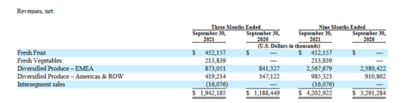 La empresa opera principalmente a través de estos 4 segmentos, siendo el más importante diversified produce EMEA con el 45% del total (Europa, Oriente Medio y África).
