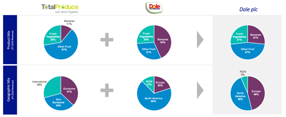 Dole PLC es la empresa resultante de una fusión entre Dole Food y Total produce, dos organizaciones complementarias, sinérgicas y culturalmente alineadas, cada una con más de 150 años de historia en la industria de productos frescos.