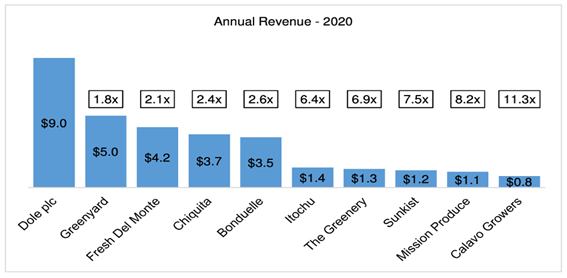 La marca de Dole además es bastante importante, sobre todo en EEUU y eso junto a su mayor escala les diferencia de su competencia.