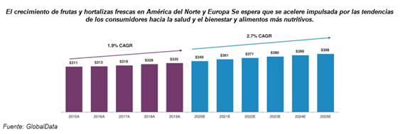 Dole pertenece a un sector muy maduro, por lo que los crecimientos orgánicos que podemos esperar no son muy elevados, se estima que alrededor del 2,7% anual hasta 2025.