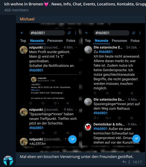 #hb0108 wird dann noch ein Flop auf ganzer Linie. Insgesamt 6 Querdenker*innen, 30 Antifaschist*innen und Artūrs fand leider keinen Anschluss, dabei war seine Tarnung perfekt 🤡