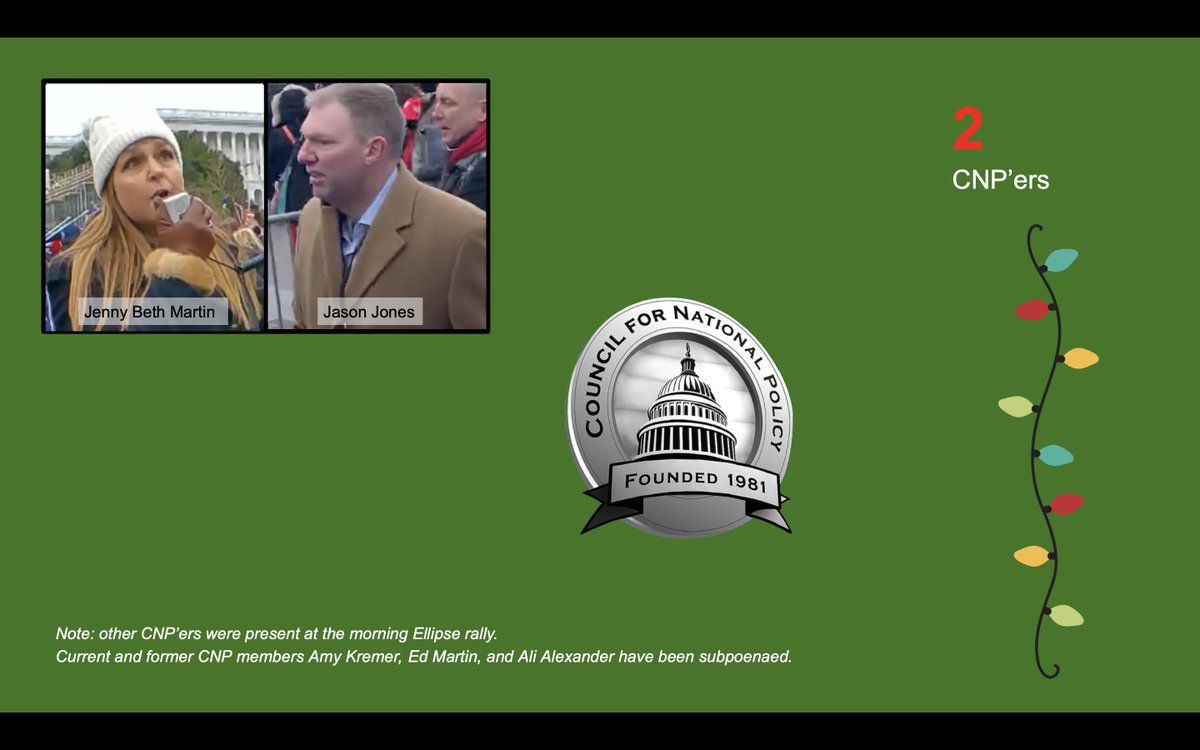 2 CNP'ers. The shadowy Council for National Policy, which mixes mainstream conservatives with far-right extremists, was heavily represented at the morning Ellipse rally on January 6, & at least 2 longstanding members played roles at the Capitol. (See splcenter.org/hatewatch/2016…) 13/