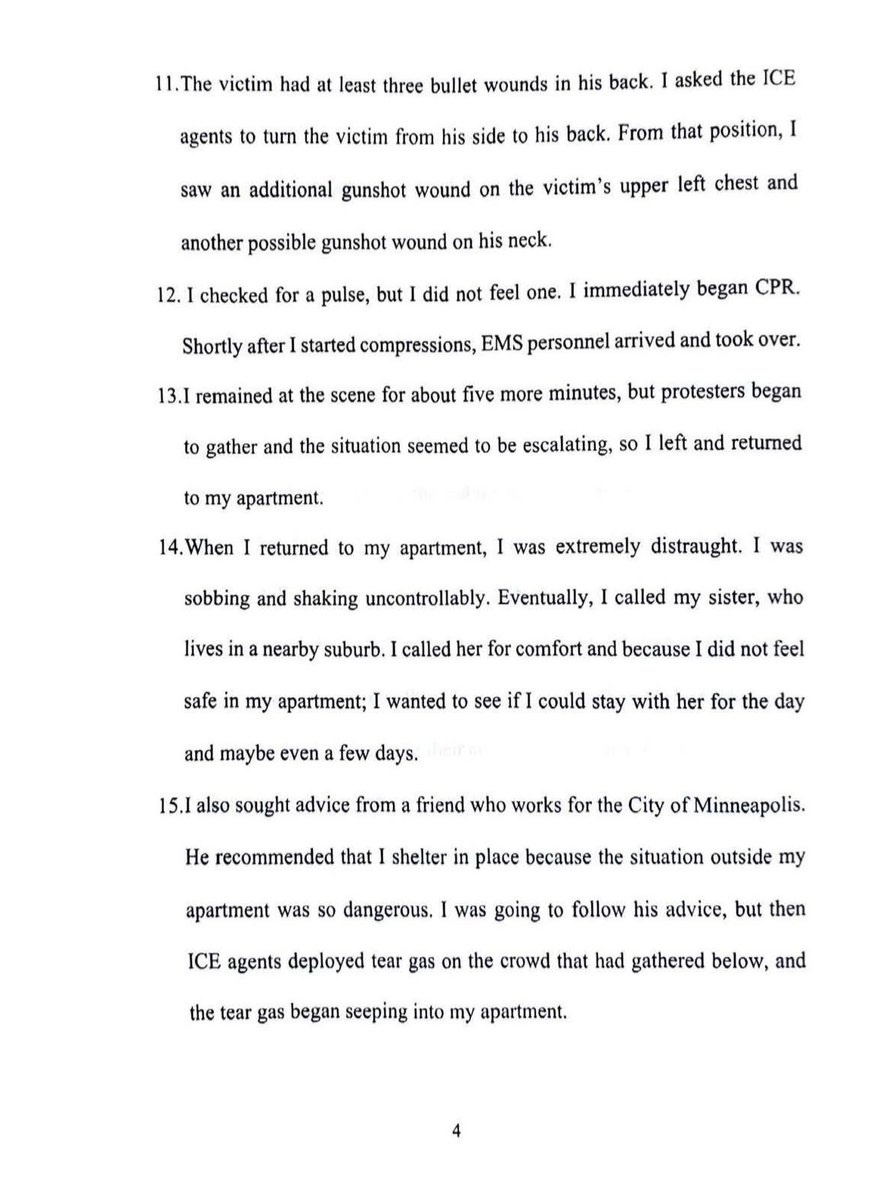 A sworn affidavit from a physician who witnessed Border Patrol shooting Alex Pretti: