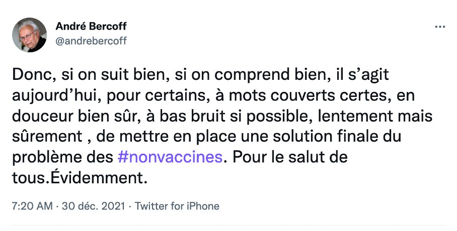 J’ai vaguement l’impression d’avoir un peu énervé quelques-uns d’entre vous avec cette histoire d’#antivax, et j’en suis désolé. Permettez-moi, dans un esprit d’apaisement, de préciser ma pensée. Car, je vous l'assure : vous prenez pour une insulte ce qui n’est qu’un constat. 👇🏿