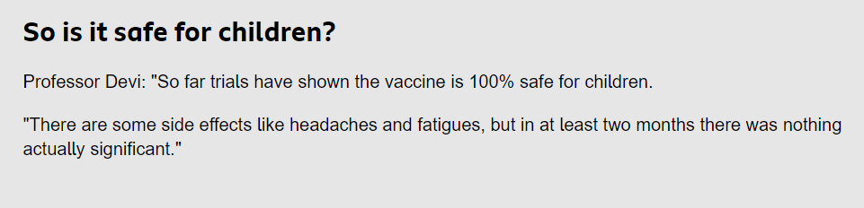 2. Dev Sridhar appeared on a childrens news programme BBC Newsround in Jun 2021 and said "Trials have shown the vaccine is 100% safe for children" #DeviSridhar #Liar