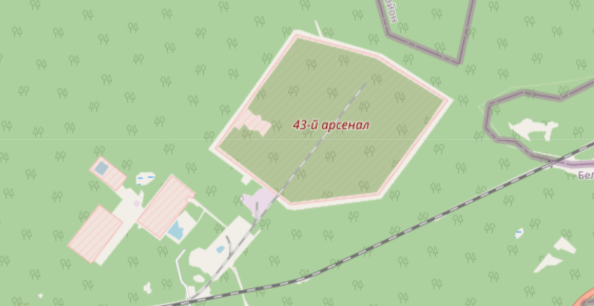 OSM montre toutes sortes d'infrastructures, mais nous allons nous concentrer sur les objets militaires. Ces zones militaires sont représentées sur la carte par une hachure rouge :