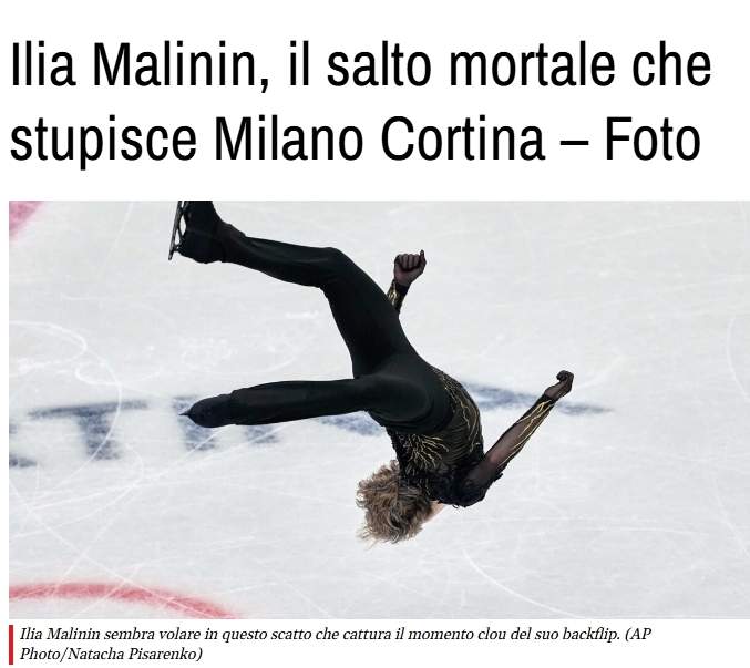 "Ilia Malinin ha sconvolto le Olimpiadi di Milano-Cortina 2026 riportando sul ghiaccio il backflip" riportano i giornali.