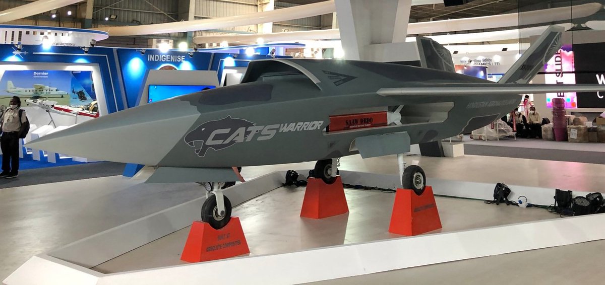In Aerolndia-2021, HAL showcased their ambitious project named 'Combat Air Teaming System' aka CATS. This is a manned-unmmaned teaming system project in which Al powered autonomous unamnned aerial vehicles will fly along with manned fighter jets for strike mission-