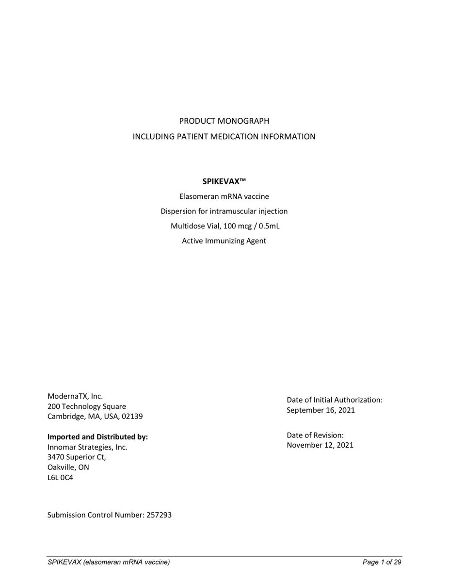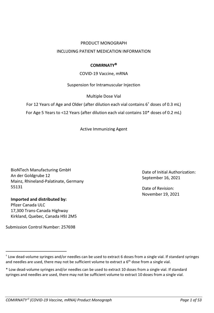 I looked up Cominartys product monograph provided by the Canadian govt thru their website, recently revised in Nov, which clearly states